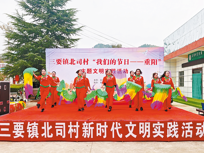10月29日,三要镇北司村举行“我们的节日——重阳”主题文明 实践活动。图为群众在表演孝德文艺节目。本报通讯员 赵晓翔