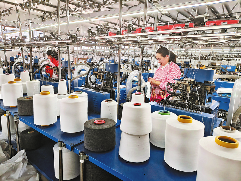 12月25日,在陕西千里足纺织有限公司内,工人正在进行袜子的花型编织检查。据悉,该公司位于山阳县银花镇银花社区,可日产袜子10万双,带动社区50多人就近务工。 (本报记者 南 玺 摄)