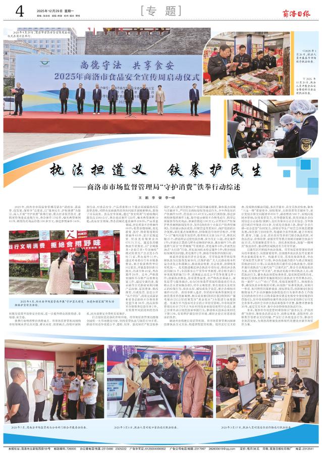 2025年,商洛市市场监督管理局紧扣“讲政治、强监管、促发展、保安全”总要求,以“服务民生、护航消费”为指引,深入开展“守护消费”铁拳行动,重点打击假冒伪劣、虚假宣传等违法违规行为,查办案件1782件,曝光典型案例81件,销毁伪劣商品价值100多万元,移送涉刑案件14件,积极有效筑牢消费安全防线,进一步提升群众的获得感、幸福感、安全感。