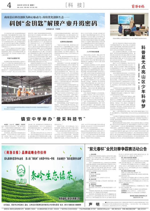 本报讯 (通讯员 阎隆昭 冯思雨)近日,镇安中学举办第十一届“俊采科技节”,一场集丰富视觉与创意实践于一体的科技展示活动,为县域学子搭建起触摸前沿、绽放灵感的广阔舞台。