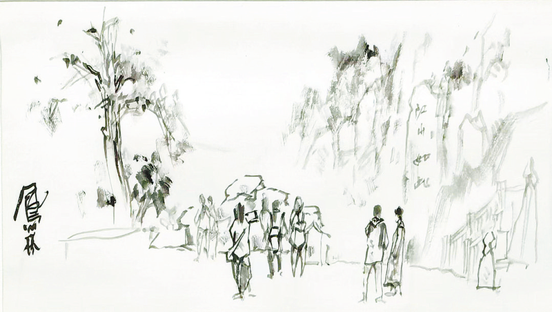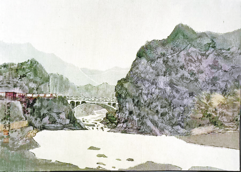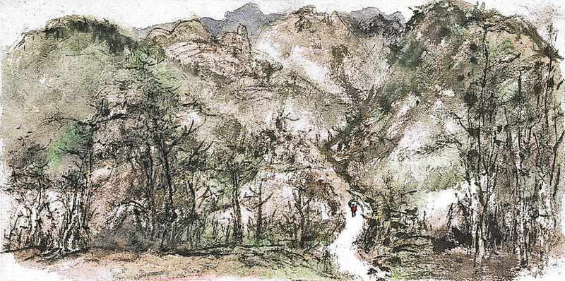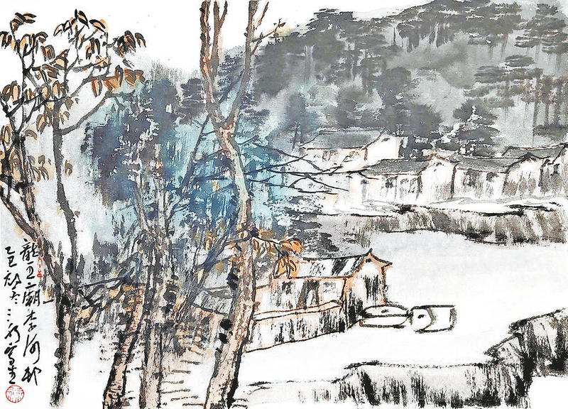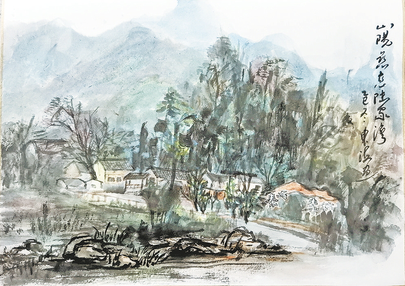 武关段湾 鱼嘴写生(国画) 候丹锋 作