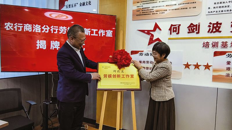 1月5日,全省农行首家“老农金”特色劳模创新工作室揭牌仪式在农行商洛商州支行举行。该工作室以全国“乡村振兴先锋力量奖”获得者、全国农行“饶才富奖”先进个人何剑波命名,旨在弘扬劳模精神,搭建学习交流与创新实践平台,为推动金融服务“三农”、助力乡村全面振兴凝聚先锋力量。 (本报记者 耿 锟 摄)