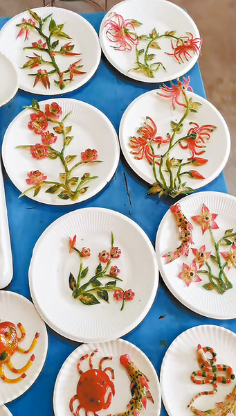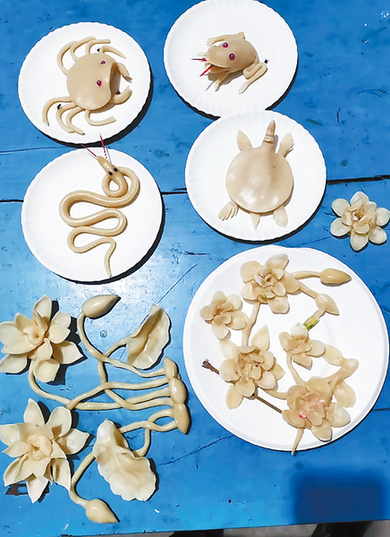 功夫不负有心人,在一次亲戚的宴席上,康明娥偶然得知堂弟康明林会做果献面花,她立刻邀请康明林来学习水献面花。