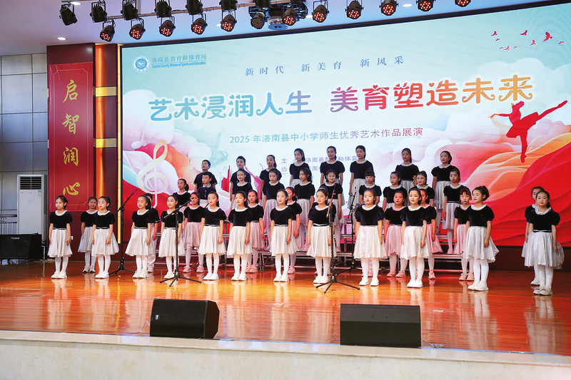 1月9日,由洛南县教育和体育局主办、洛南中学协办的“艺术浸润人生·美育塑造未来”——洛南县中小学师生优秀艺术节目暨作品展演活动在洛南中学大礼堂圆满落幕。据悉,本次活动共从全县20多所中小学校征集参赛作品1378件,包括音乐和美术两大类别,活动全方位地集中展示了该县中小学美育教育的丰硕成果,进一步推动了该县中小学美育工作的高质量发展。 (本报通讯员 郭夏季 摄)