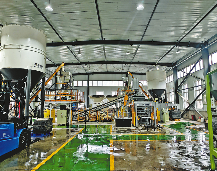 “让尾矿变‘金石’,关键在于攻克掺量高与性能优难以兼顾的难题。”刘璇指着第一条生产线介绍道,“这就是高强度静压路面砖生产线。”堆积的尾矿经过合理配比、活化改性等预处理,与少量水泥及其他辅料混合,再经过高压成型、养护等工艺,最终“变身”为一块块坚固耐用的路面砖。