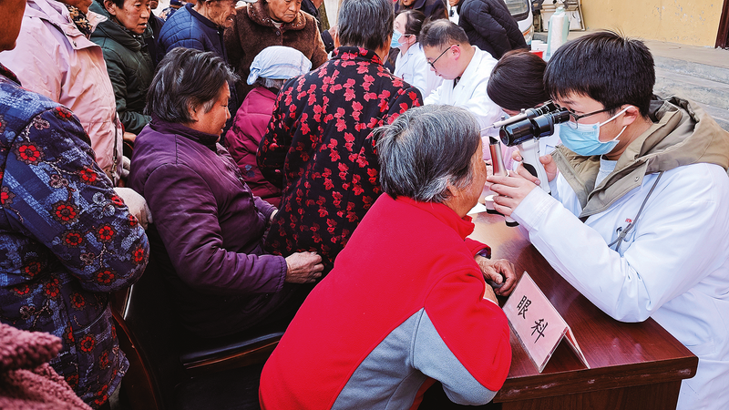 1月13日,市中医医院在商州区刘湾街道中心村开展义诊活动,现场脑病科、皮肤科、心病科、眼科等专家为前来的300多名群众进行了义诊服务,并发放了价值3000多元的药品。(本报记者 杨 鑫 摄)