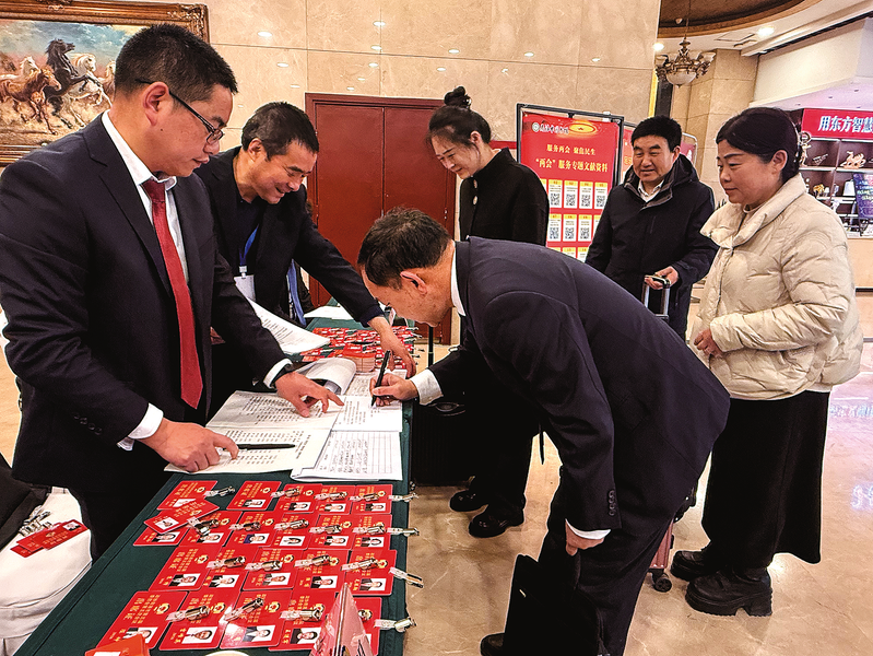 怀揣民生福祉,肩负责任使命。2月2日,参加市政协五届五次会议的政协委员陆续抵达驻地。他们精神饱满、满怀信心地向大会报到,开启了我市一年一度的两会时间。 (本报记者 王孝竹 摄)