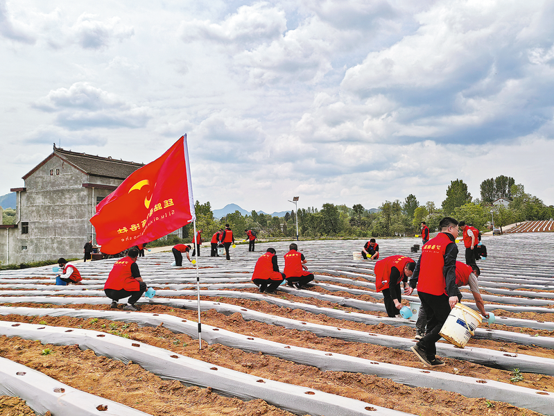 市烟草专卖局机关党委组织各支部党员干部深入洛南烟区开展抗旱移栽助农活动。
