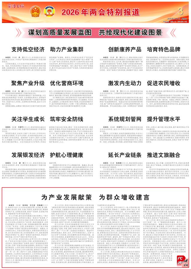 王舒委员建议,大力支持丹凤固态锂离子电池项目建设。他说,丹凤固态锂离子电池项目作为绿色转型的关键载体,是破解县域工业基础薄弱现状的重要抓手,建议市级层面将该项目纳入全市重点项目清单,助力商洛打造新能源及储能产业基地。他表示,丹凤作为全省首个“低空经济示范县”,中天禹辰无人机项目也成熟探索“低空+植保”“低空+文旅”等多元应用场景,建议市上支持丹凤打造全省低空经济标杆,将丹凤低空经济纳入全市重点培育计划,支持丹凤智能制造产业园建设。同时,推动“低空+体育”深度融合,助力丹凤县打造低空经济产业集群,为商洛培育新的经济增长极。
