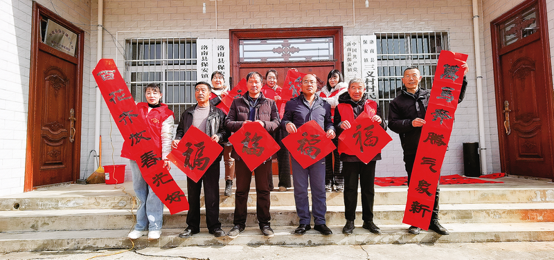 2月4日,洛南县市场监管局驻村工作队联合保安镇三义村组织开展“义务书写赠送新春联、免费理发”活动,将浓浓的年味与马年新春祝福送到群众身边,为即将到来的春节增添了喜庆氛围。 (本报通讯员 杨开让 摄)