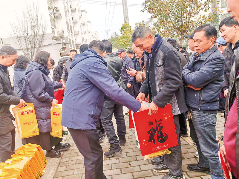 2月6日,陕西省图书馆干部职工深入对口帮扶的丹凤县竹林关镇阳河村,开展新春走访慰问活动。活动中,省图书馆向群众发放了米面油和春联共计630份,并专程前往敬老院看望集中供养的五保户老人,为他们送上节日关怀与真挚祝福。 (本报通讯员 苏甜甜 摄)