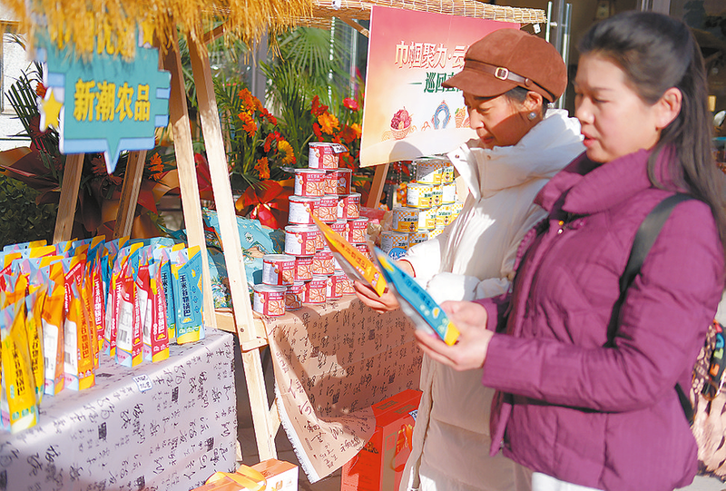 ▷山阳县丰阳西市的农特产品深受顾客欢迎。