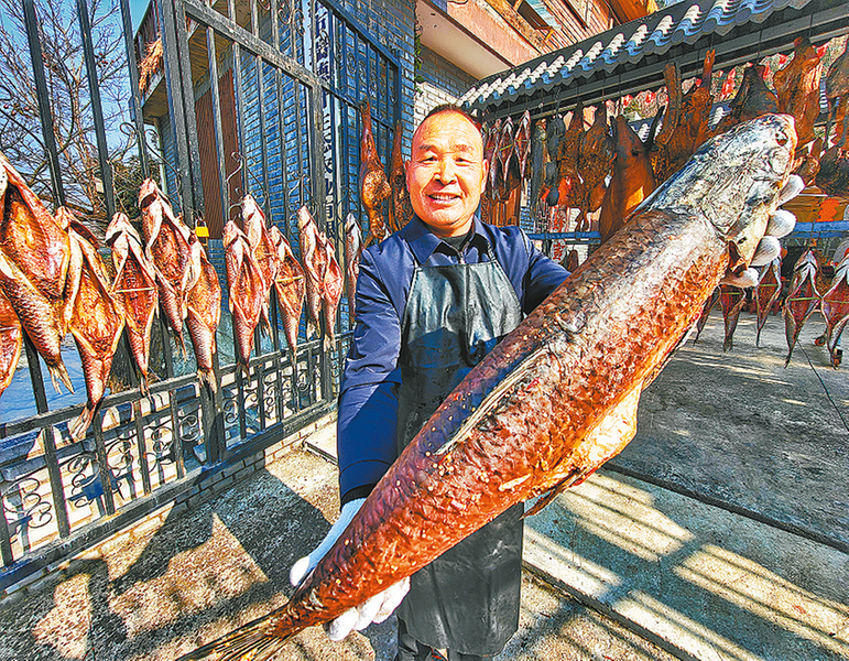 △商州区一商户自制腊鱼、腊肉走俏市场,节前销量大幅攀升。