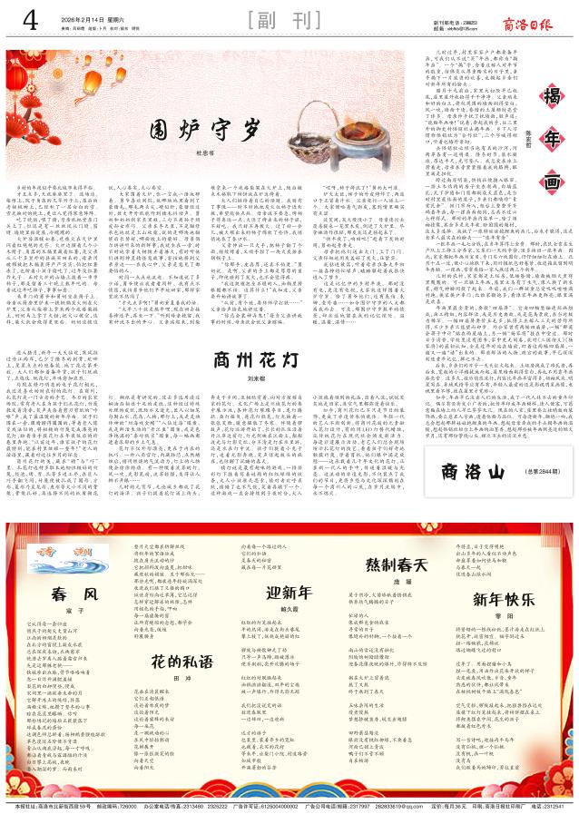 与现在精巧明亮的电子花灯相比,我还是喜欢幼时农村的花灯。在商州,扎花灯是一门古老的手艺。冬日的农家场院,常有老人在为孩子们扎花灯,竹篾散发着清香,笑声夹杂着剪刀剪纸的“咔嚓”声,成了最温暖的新年序曲。孩子们围在一旁,眼睛瞪得圆圆的,等着老人像变戏法似的,将粗糙的竹篾变成漂亮的花灯,盼着亲手提花灯在年夜饭后的街巷里奔跑。“以前过年,谁家孩子的花灯最特别,能在村里炫耀一整年!”老人的话语里,藏着对过往岁月的怀念。