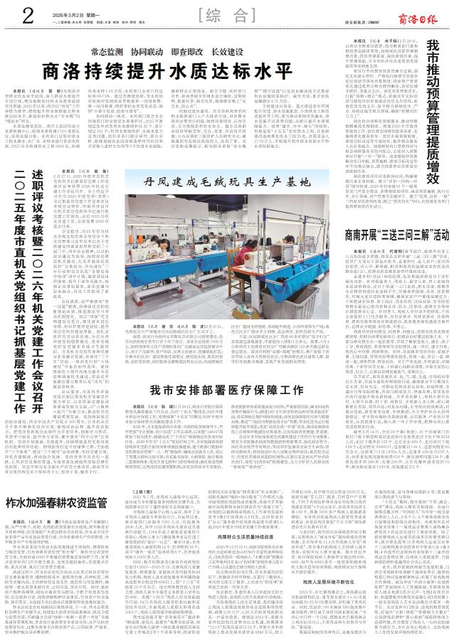 协同联动一体化。水利部门配合生态环境部门科学划定水源保护区,2025年新划定集中式饮用水水源保护区32个,累计划定101个;针对水源地保护、水源水量不足等问题,组织多部门联合研判、联合分析,新规划镇安县庙沟镇蒿坪村耳扒沟和月河镇八盘村大焦沟等3个饮用水水源地,保障群众正常用水。联合卫健、疾控部门对丰、枯两季城乡饮用水进行抽检,定期研判、数据共享、联合攻坚,确保群众喝上“安全水、放心水”。