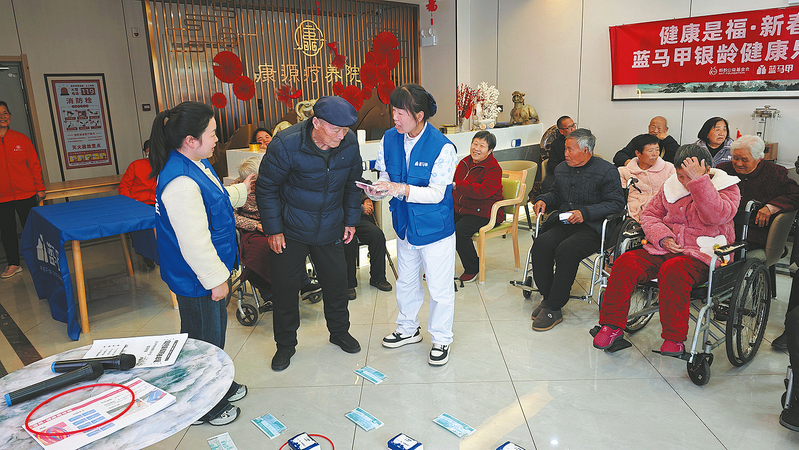 2月25日,洛南县肢体残疾人协会7名蓝马甲志愿者走进洛南县康源疗养院,开展“健康是福,新春送暖”主题活动,为32名老人送去健康宣讲。 (本报记者 肖 云 摄)