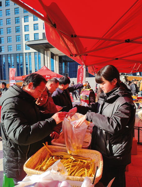 在洛南县2026年“来洛南赶大集 品山城烟火味”活动现场,本地腐竹凭借优良品质赢得群众青睐,引得大家争相选购。