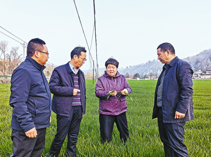 3月5日,市农技站春管技术服务队深入商南县,开展“下沉一线促弱转壮”小麦、油菜春管田间技术指导,以精准技术赋能农业生产,帮助经营主体提质增效,筑牢商洛农业产业发展根基,助力乡村全面振兴。(本报记者 杨 鑫 摄)