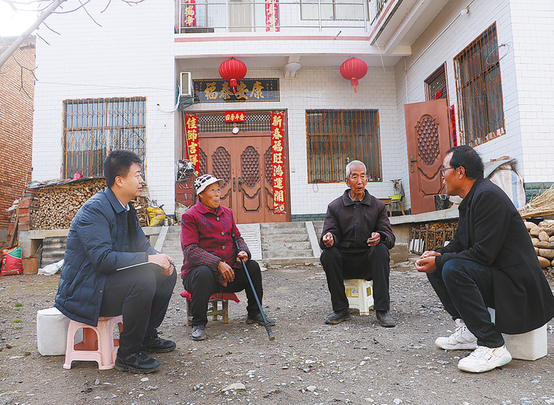 3月5日,叶飞(左一)在药王村调处村民因道路出行受阻引发的矛盾纠纷。
