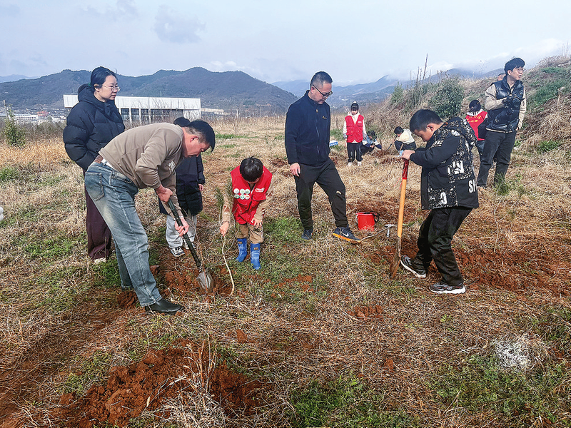 植树现场一派忙碌景象,小记者们化身“小小植树员”,褪去平日的稚嫩,个个干劲十足、热情高涨。在家长的悉心指导下,他们分工协作、默契配合,扶苗、培土……认真的模样成为春日里一道动人的风景线。