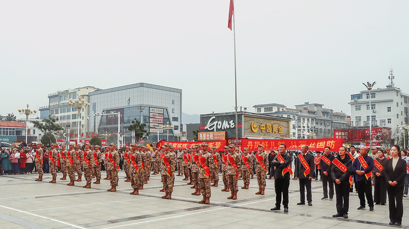 ▷3月13日,丹凤县举行2026年上半年欢送新兵暨现役军人家庭集中庆送立功喜报仪式。活动旨在欢送有志青年奔赴军营,为荣立军功的军人家庭送上喜报与关怀,弘扬拥军优属优良传统,凝聚起全社会尊崇军人、支持国防的强大力量。(本报通讯员 田 东 摄)