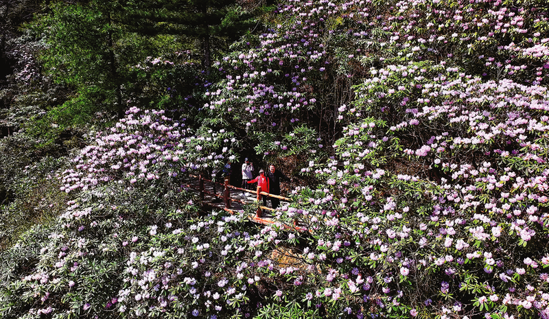 ▽近日,镇安木王山国家森林公园的杜鹃花漫山绽放,美不胜收。