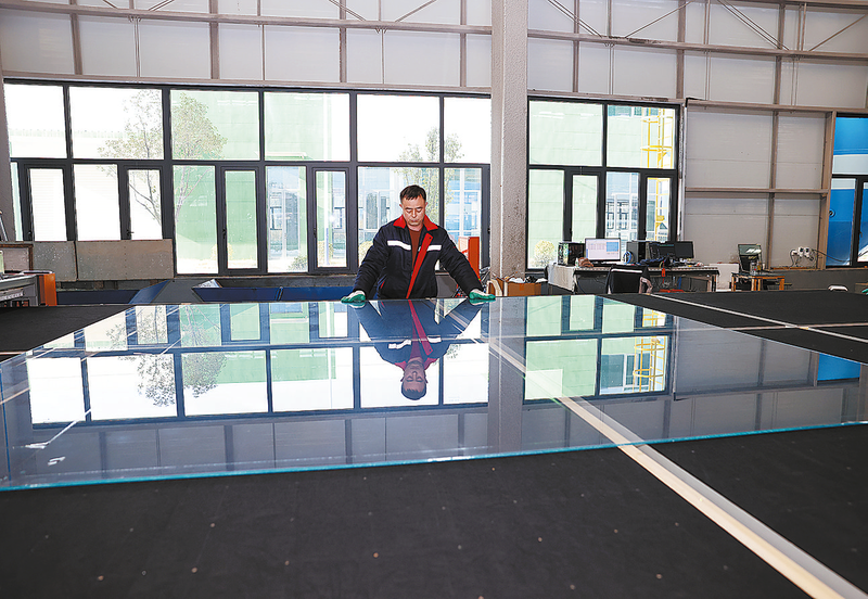 3月20日,工人在商洛经开区陕西煌朝真空玻璃科技有限公司车间作业。该公司主要生产超薄真空玻璃、系统门窗等,产品具有低碳节能、保温隔热、隔音降噪、防霜防雾、抗风压、寿命长的特点,主要应用于家电、汽车、电子、建筑等行业。2026年预计市场规模15万平方米,实现产值1.2亿元。 (本报记者 李 敏 摄)