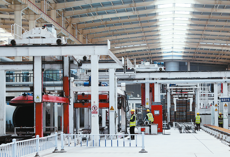四月一日,在商州区岭南佳泰公司新型绿色建材项目生产车间,工人正有序开展作业。该项目依托三一集团品牌和技术优势,由三一集团提供工艺设计、设备安装、生产培训等全方位支撑,利用数字化驱动PC构建生产、物流、安装全业务流程,实现自动化、信息化、智能化工厂的精准管理。项目达产达效后,可实现年产值六亿元、利税三千万元。 (本报记者 李 敏 摄)