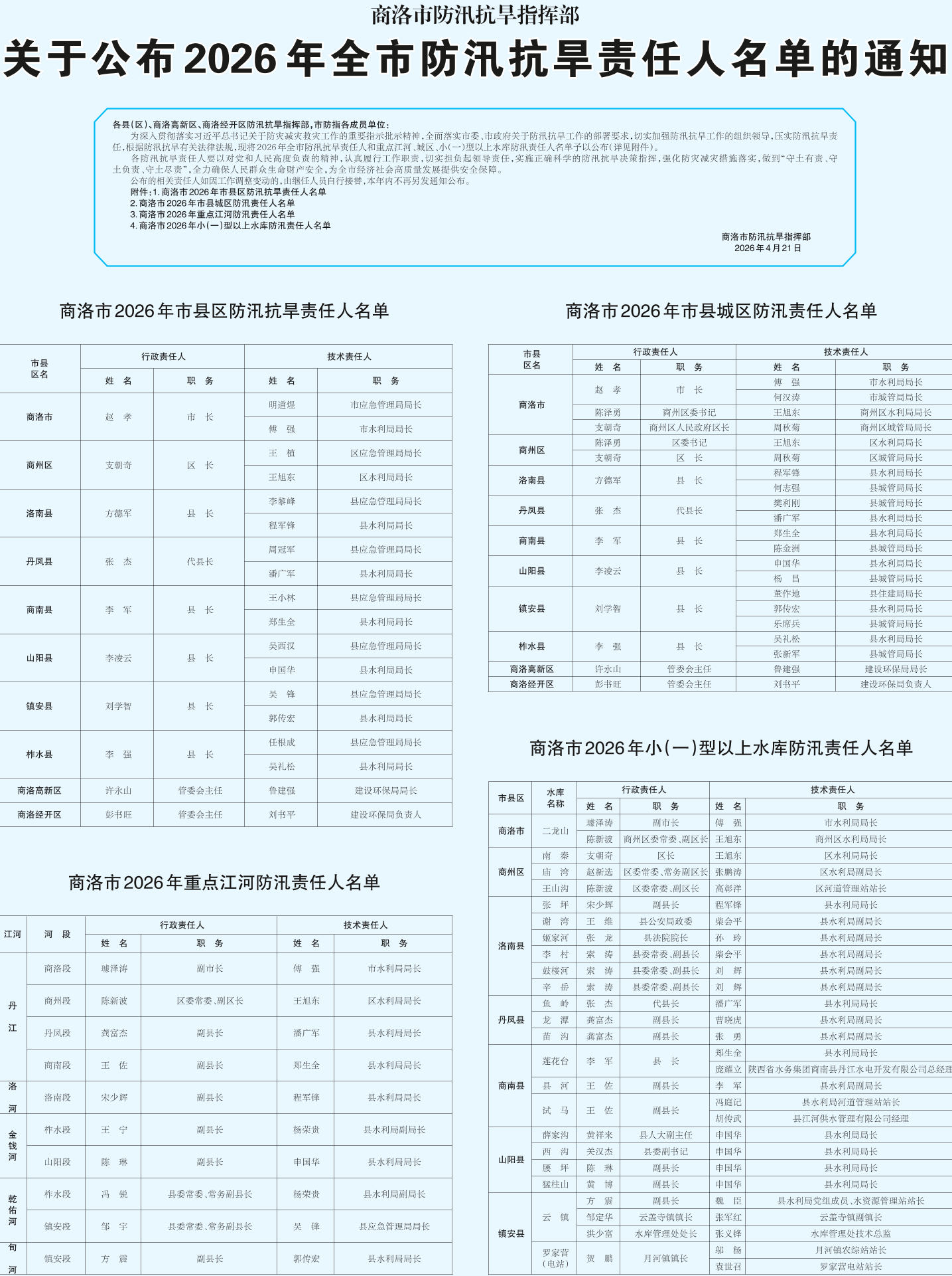 关于公布2026年全市防汛抗旱责任人名单的通知
