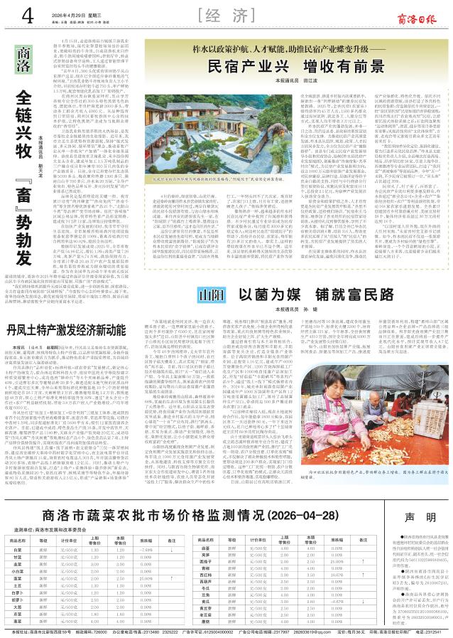 商洛市蔬菜农批市场价格监测情况(2026-04-28)